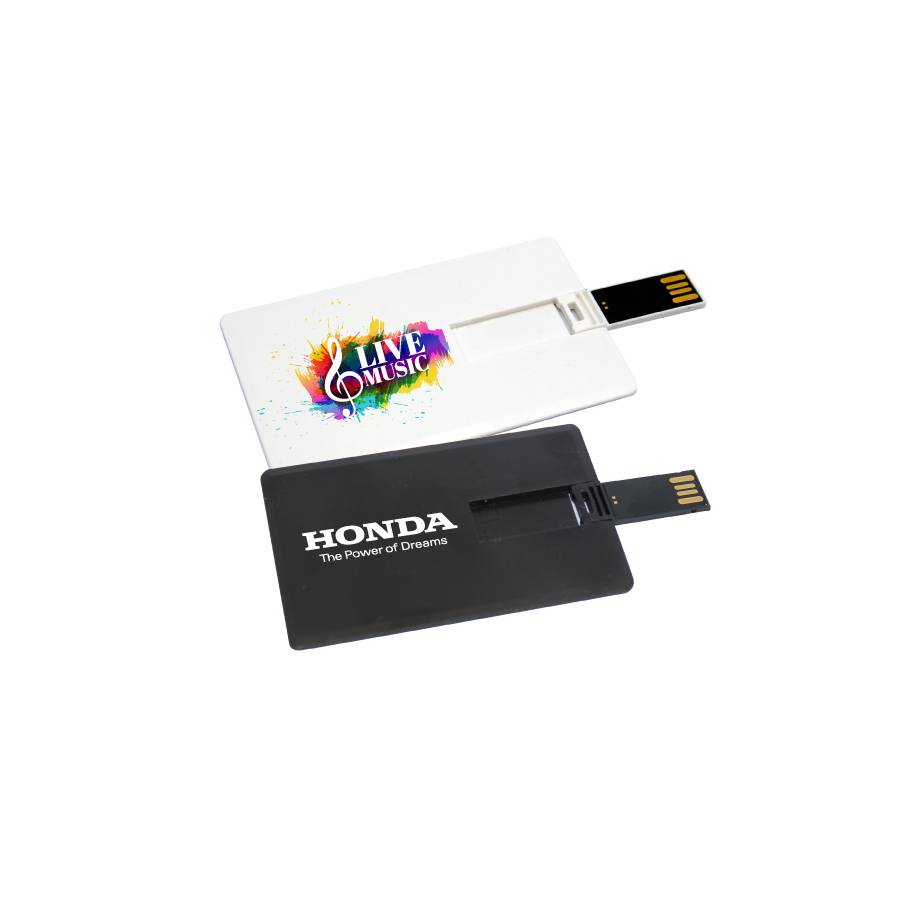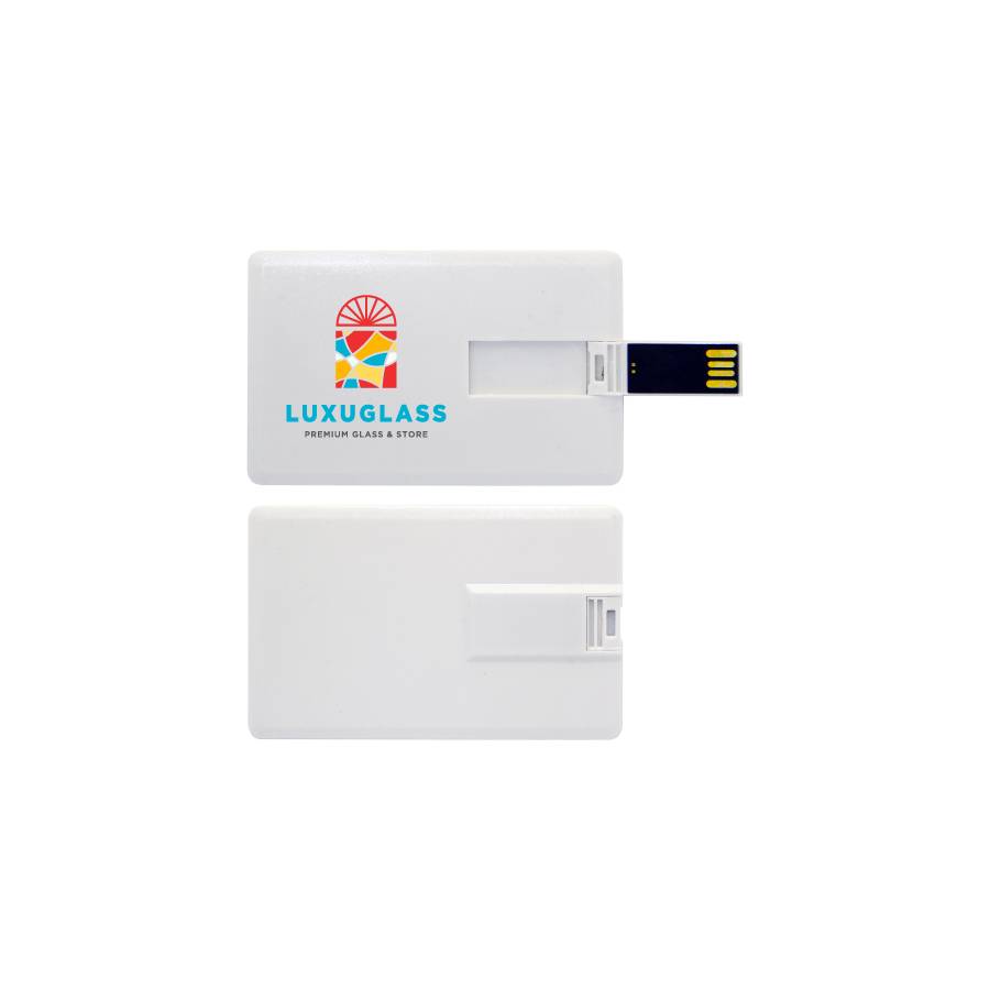 Promotional Credit Card USB drives have the benefit of being able to slot into existing wallets, purses and bags, it has the largest surface area for your full-color custom graphics and logo. This wallet sized flash drive is a slim credit card sized USB Flash Drive is the perfect tool for advertising. It can be conveniently carried in a wallet with easy access when needed. The flash drive has a large and flat surface imprint area, allowing any logo on it with high quality and visibility. The customized credit card USB flash drives are great gifts for customer appreciation, trade-shows, club members, event freebies, souvenirs, door-prizes, employee gifts and more.