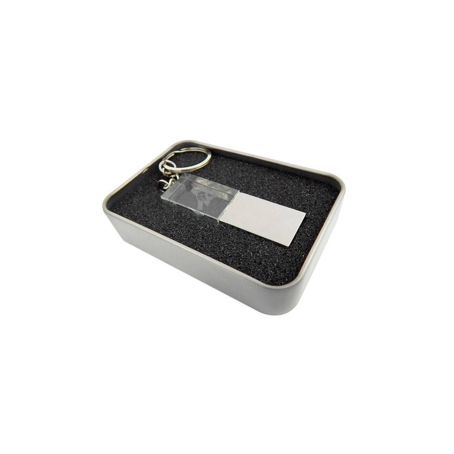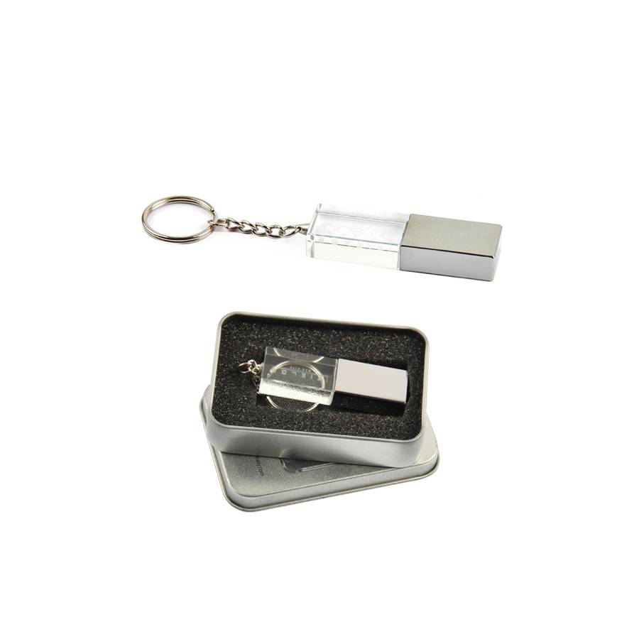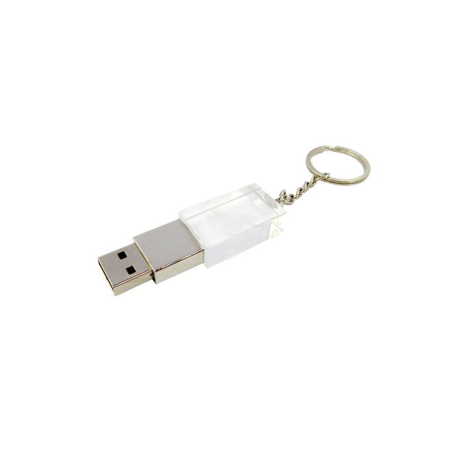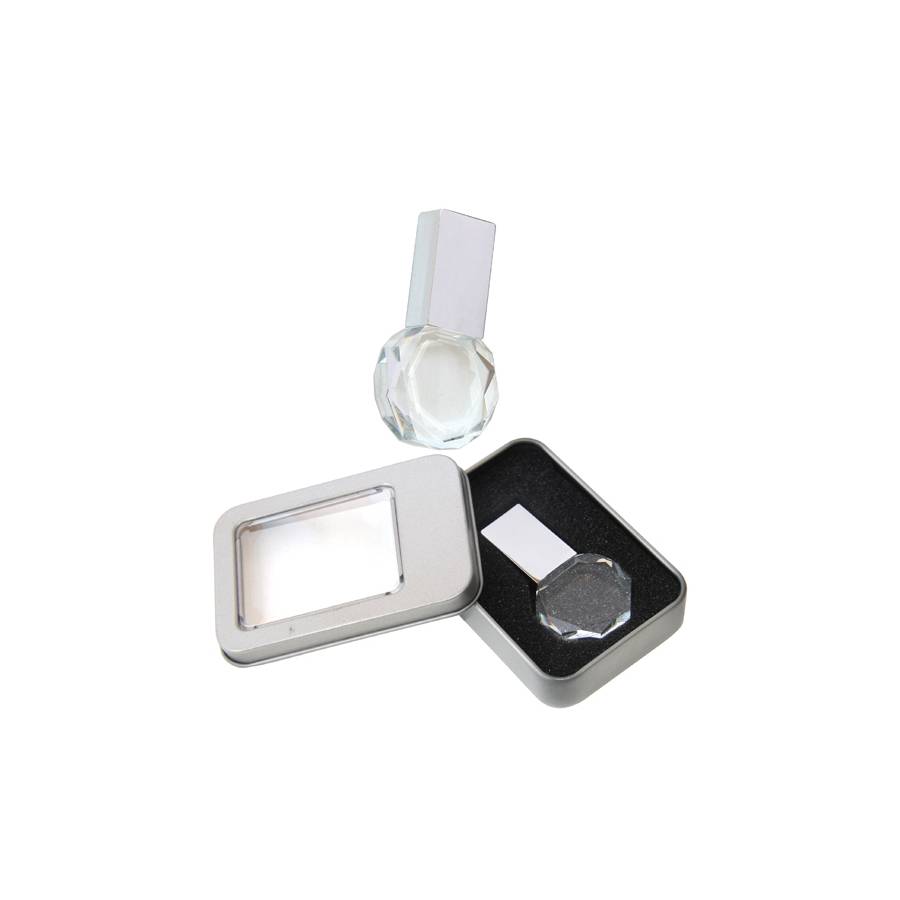 Promotional Crystal USB Flash Drive. A metal and crystal combination, manufactured from laser cut clear acrylic and diamond polished to perfection. We laser etch your 2D/3D logo inside, and therefore the outside is perfectly smooth. The high-intensity blue coloured LED light, illuminates the design for an even greater effect when connected to a computer. This eye-catching design is certainly a show-stopper, and perfect for your clients to show off your brand logo.