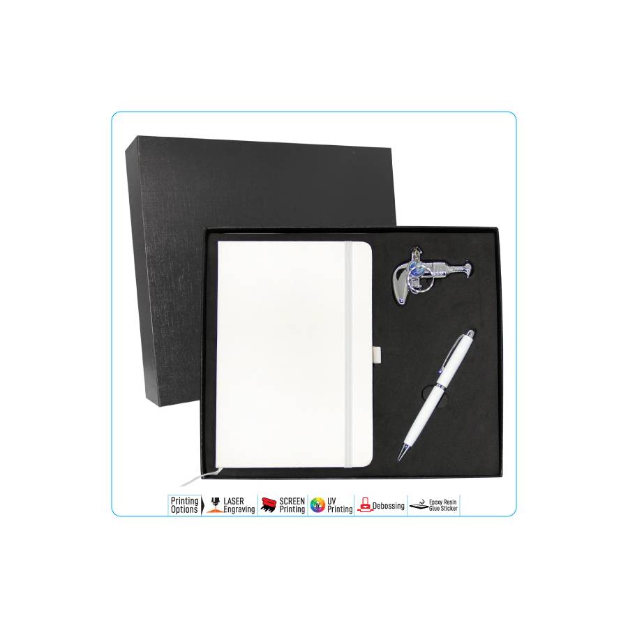 This corporate gift set Contains total of 4 Products packed in a black gift box are stylish better presentation.