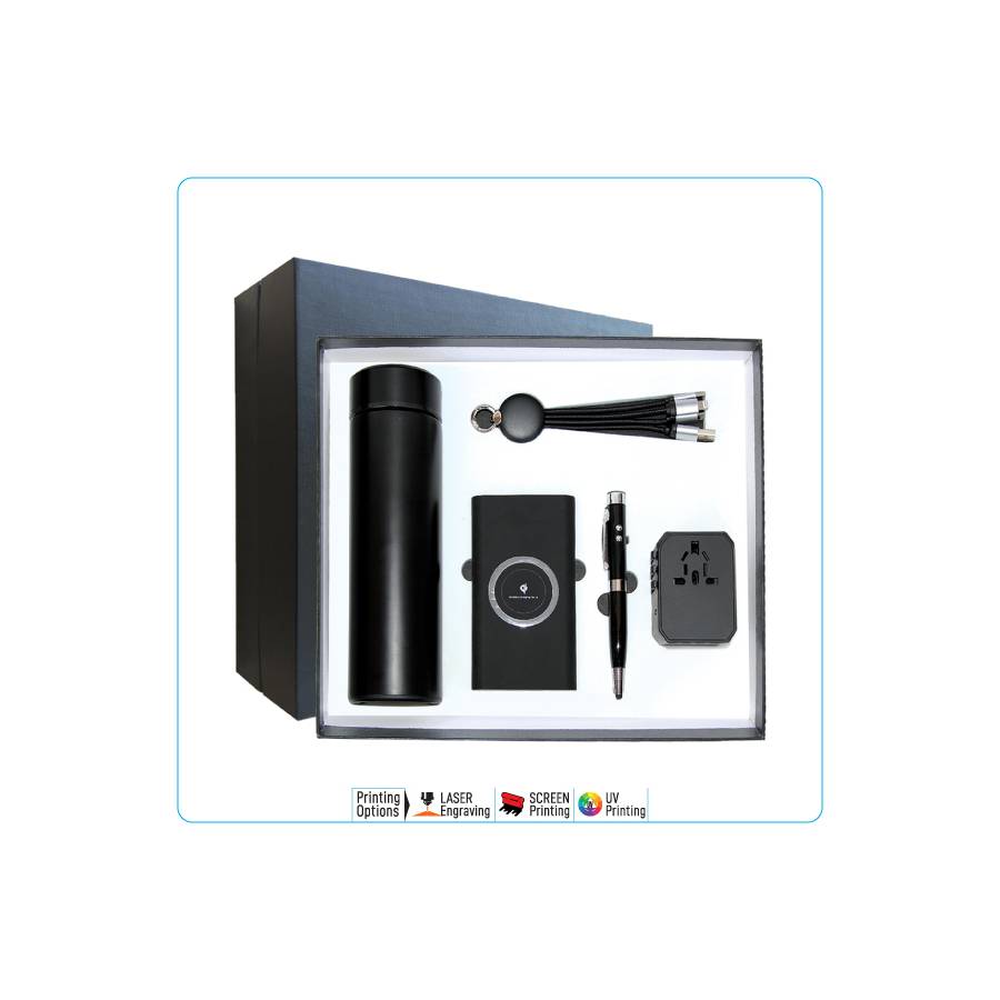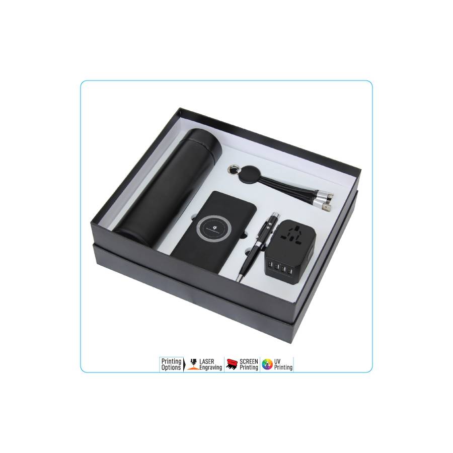 This corporate gift set Contains total of 4 Products packed in a black gift box are stylish better presentation.