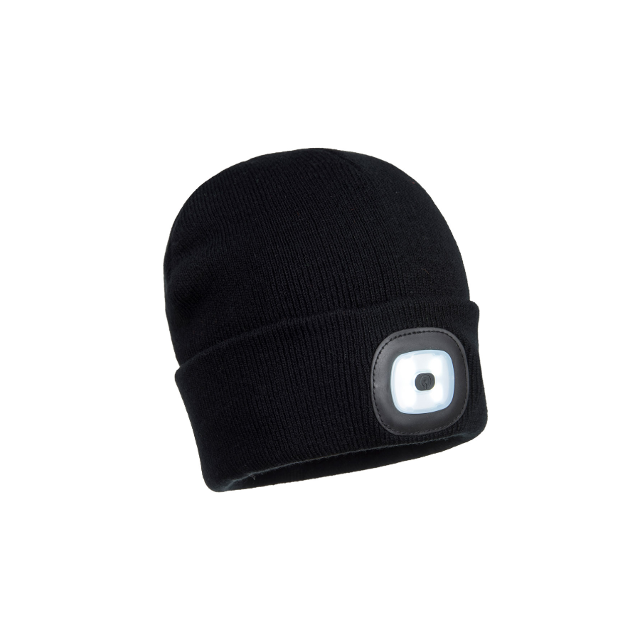 This warm and comfortable acrylic beanie hat features a removable LED front light for superior visibility in low light conditions. The rechargeable LED can be charged in a USB port.