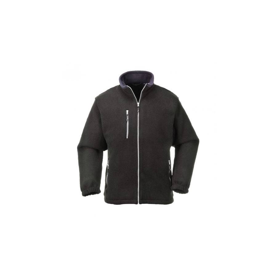 A stylish two-tone design, in our unique double-sided fleece fabric. Heavyweight and snug, this garment will take you from work to play. Two lower zip pockets and an upper chest pocket provide ample storage space. Features contrast silver zips.