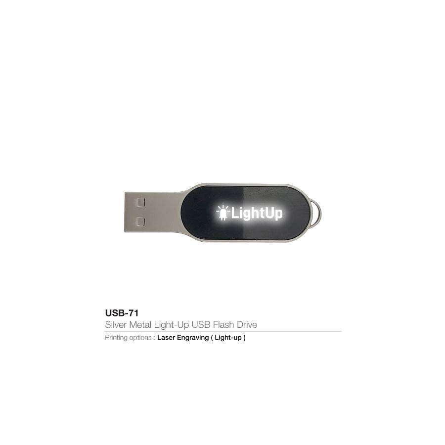 16GB Matt Silver with Led Light for light Up Logo Branding Oval Shape USB