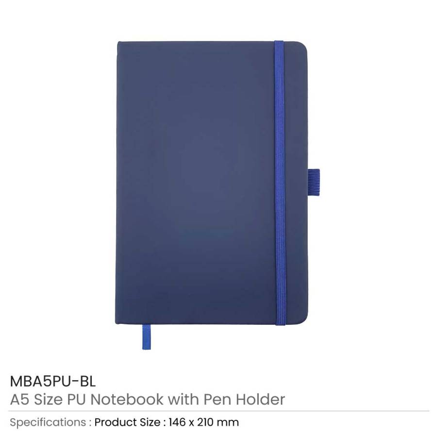 A5 Blue PU Notebook with Pen Holder