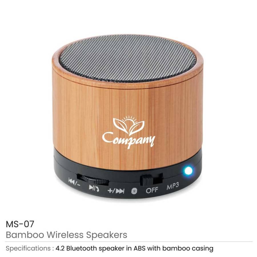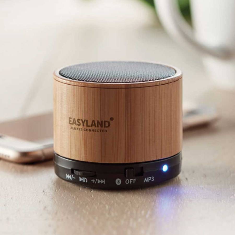 | Additional information | 4.2 Bluetooth speaker in ABS with bamboo casing and LED light indication. 1 Rechargeable Lithium 450 mAh battery included. Includes a SD Card port and an AUX/USB cable. Hands free call function. |
