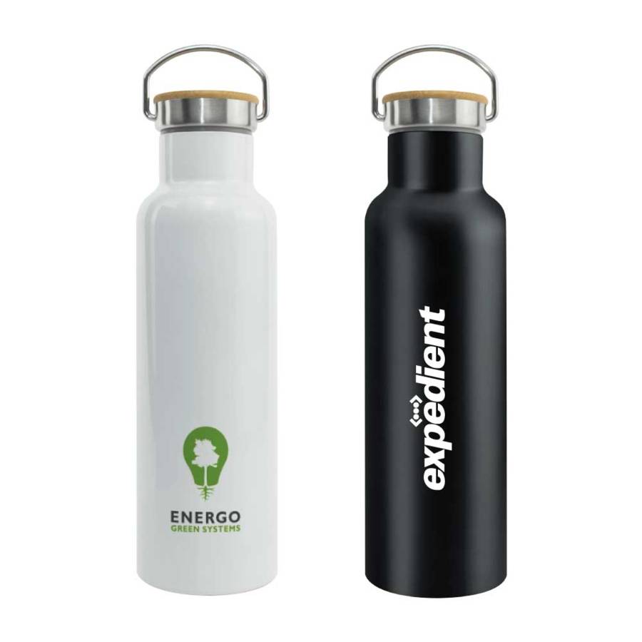 | Additional information | Double wall stainless steel insulating vacuum flask with lid in bamboo and carry handle. | Size : 70 x 255 mm | Capacity : 600ml |