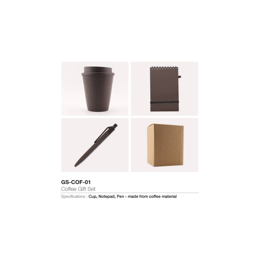 | Additional information | Gift set made from coffee material. Coffee grounds is a biodegradable material. It's recycled and good for environment. | Size : 115 x 150 x 110 mm |