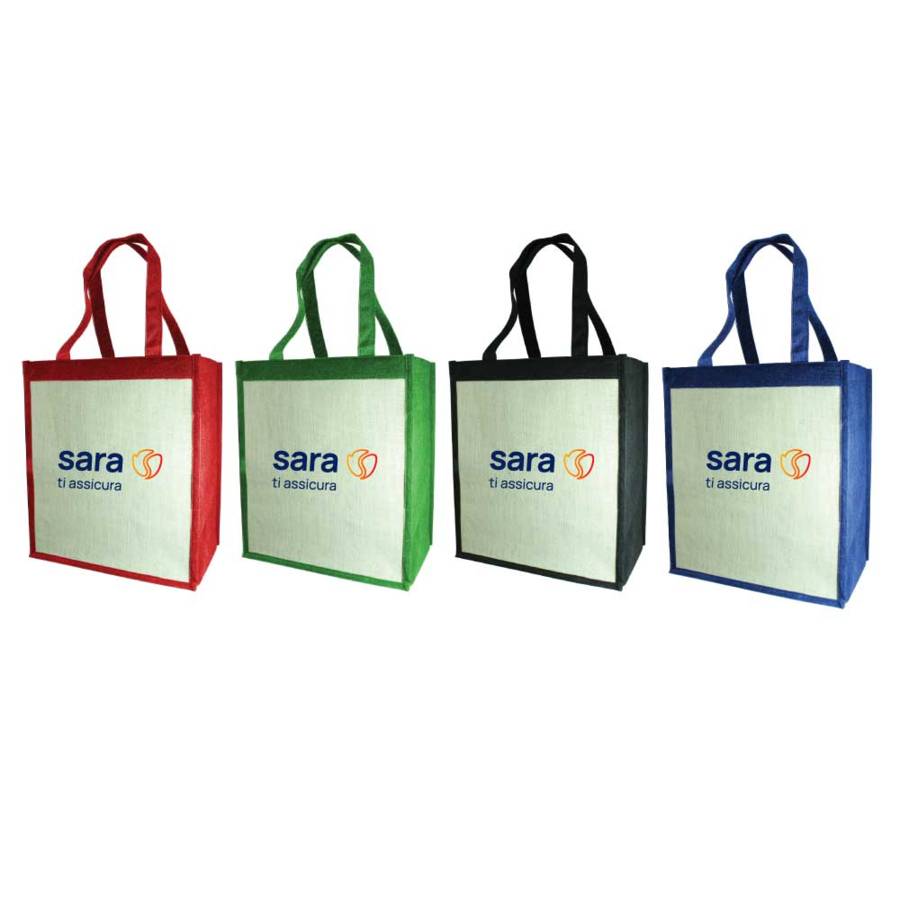 | Additional information | A jute bag with colour on corners, bottom and handle part. Cream color on sides for single or full color printing. | Size : 350 x 300 x 200 mm |