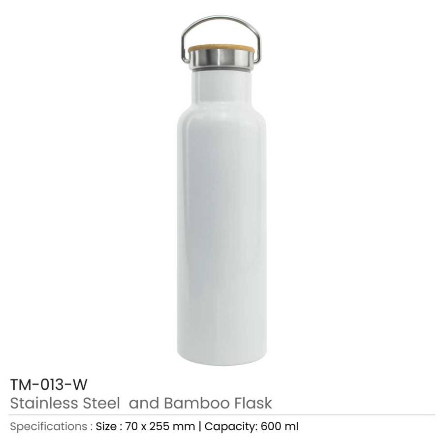 White Colour Stainless Steel and Bamboo Flask